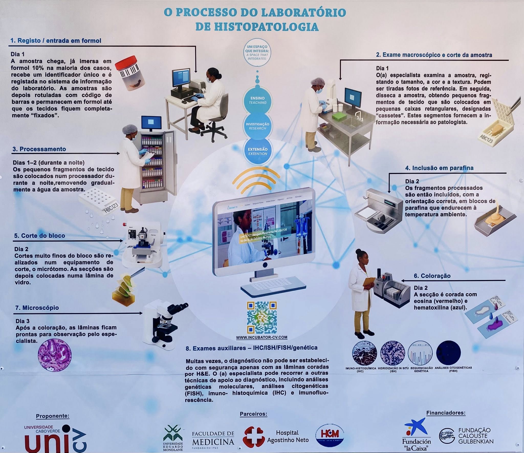 O Projeto INCUBATOR – Caracterização Clínico-Patológica do Cancro nos PALOP é coordenado pela Uni-CV, em parceria com a Universidade Eduardo Mondlane (Faculdade de Medicina), o Hospital Universitário Agostinho Neto (HUAN) e o Hospital Central de Maputo (HCM). O projeto tem como eixo estratégico o desenvolvimento de infraestruturas laboratoriais e a formação avançada de investigadores, com foco no estudo do cancro da próstata.