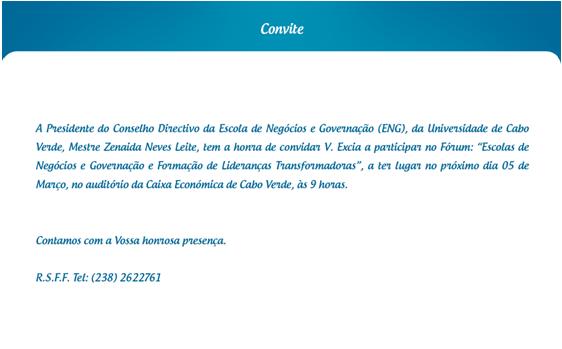ENG - Fórum: "Escolas de Negócios e Governação e Formação de Lideranças Transformadoras", a ter lugar no próximo dia 05 de Março, no auditório da Caixa Económica de Cabo Verde, às 9 horas.