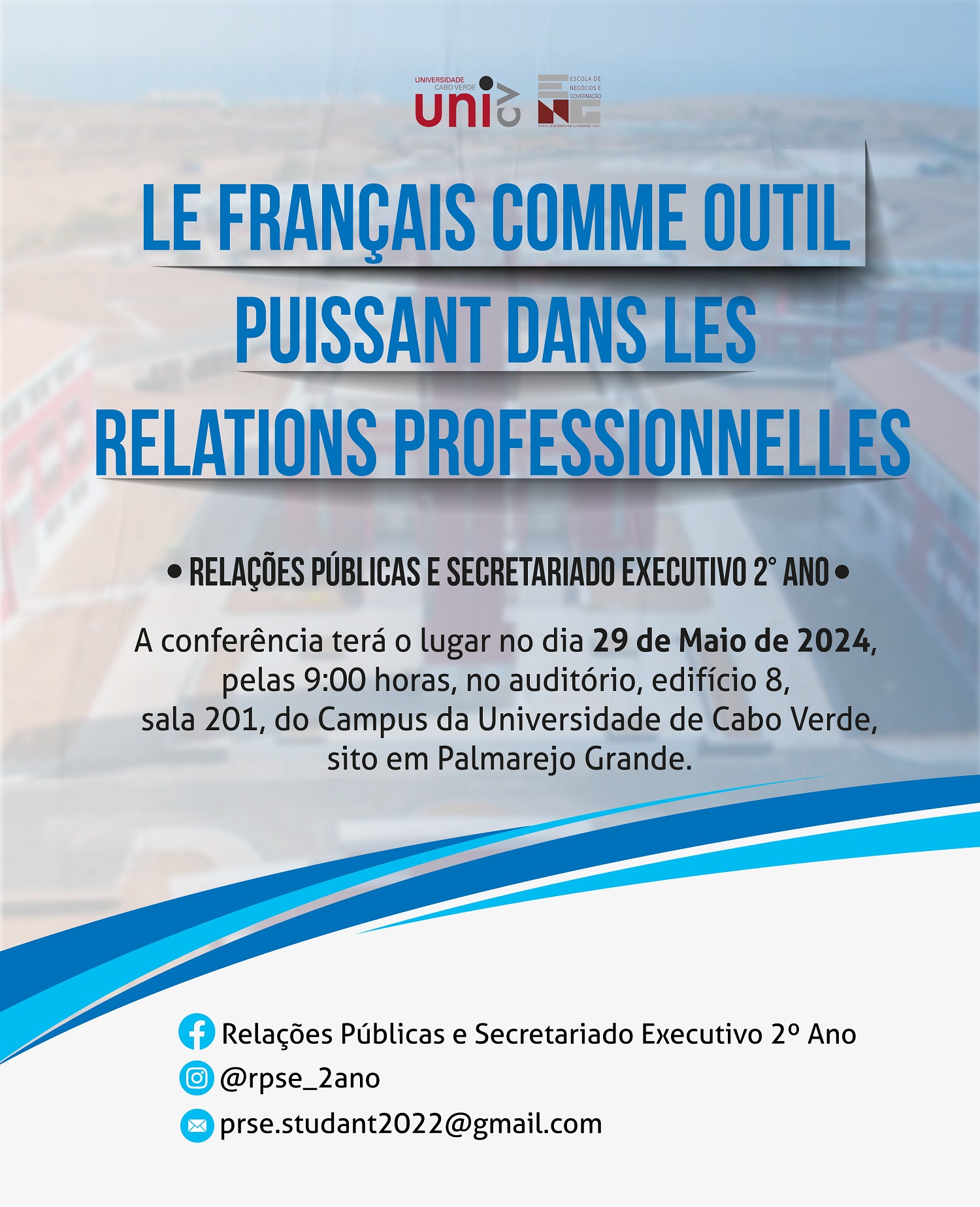 A Universidade de Cabo Verde (Uni-CV), através da sua Escola de Negócios e Governação, irá realizar a conferência “Le Français Comme Outil Puissant Dans Les Relations Professionnelles”. Este evento irá ter lugar no dia 29 de maio, pelas 9h00, no auditório do edifício 8, no Campus do Palmarejo Grande, e destaca a importância da língua francesa no contexto profissional global.