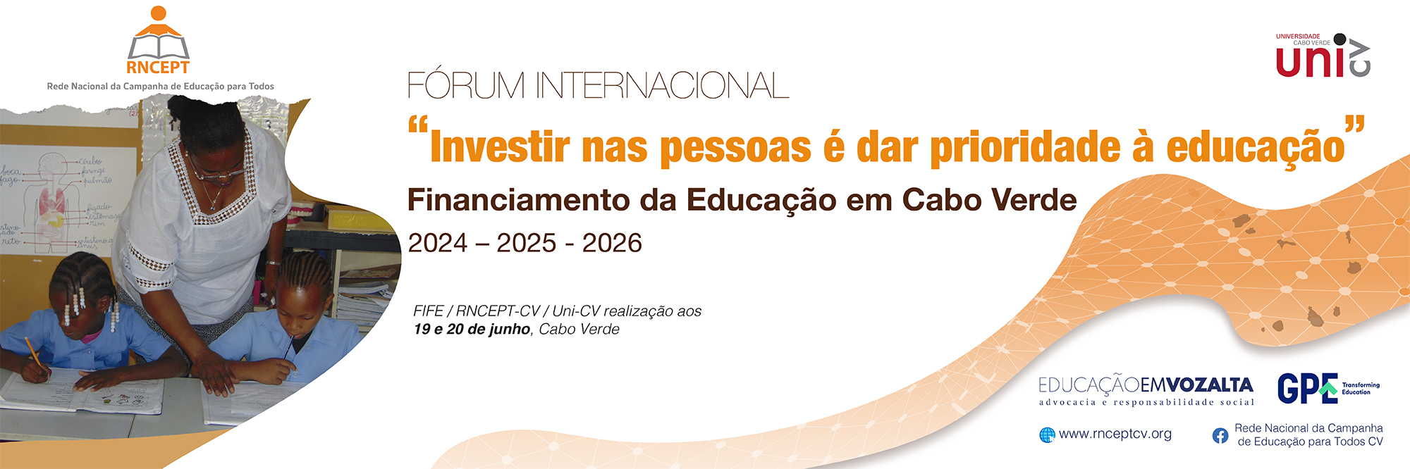 A Rede Nacional da Campanha de Educação para Todos de Cabo Verde (RNCEPT-CV) e a Universidade de Cabo Verde (Uni-CV), em colaboração com o Education Out Loud, organizam um Fórum Internacional sobre o financiamento da educação em Cabo Verde. Este evento crucial, intitulado "Investir nas pessoas é dar prioridade à educação", decorrerá nos dias 19 e 20 de junho, destacando a importância de um financiamento equitativo e eficaz para a educação em todos os níveis.
