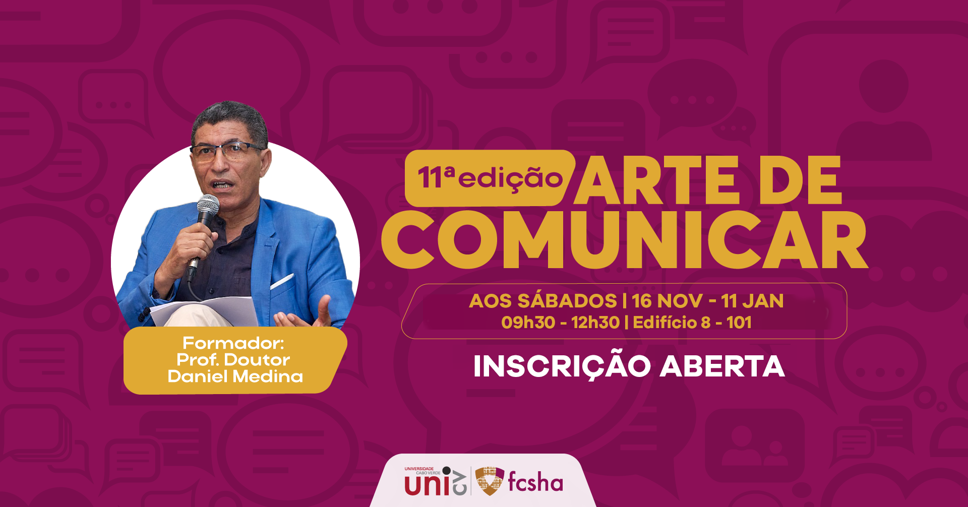 A Universidade de Cabo Verde informa a todos que se encontram abertas as inscrições para a 11.ª edição da formação "Arte de Comunicar" com o formador Daniel Medina.