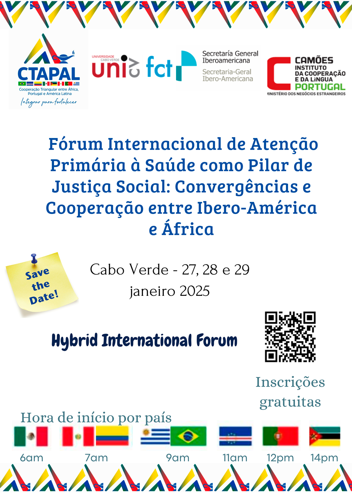 A Universidade de Cabo Verde (Uni-CV) recebe o Fórum de Atenção Primária à Saúde como Pilar de Justiça Social: Convergências e Cooperação entre Ibero-América e África, evento que decorrerá nos dias 27, 28 e 29 de janeiro de 2025, online e presencial no auditório 102 do Campus do Palmarejo Grande. A iniciativa insere-se no âmbito do projeto “TECENDO LAÇOS: Iniciativas para o Fortalecimento da Formação Profissional em Enfermagem na Ibero-América e África”, uma cooperação triangular que reúne oito países, na qual a Cabo Verde faz parte, através da Universidade de Cabo Verde.