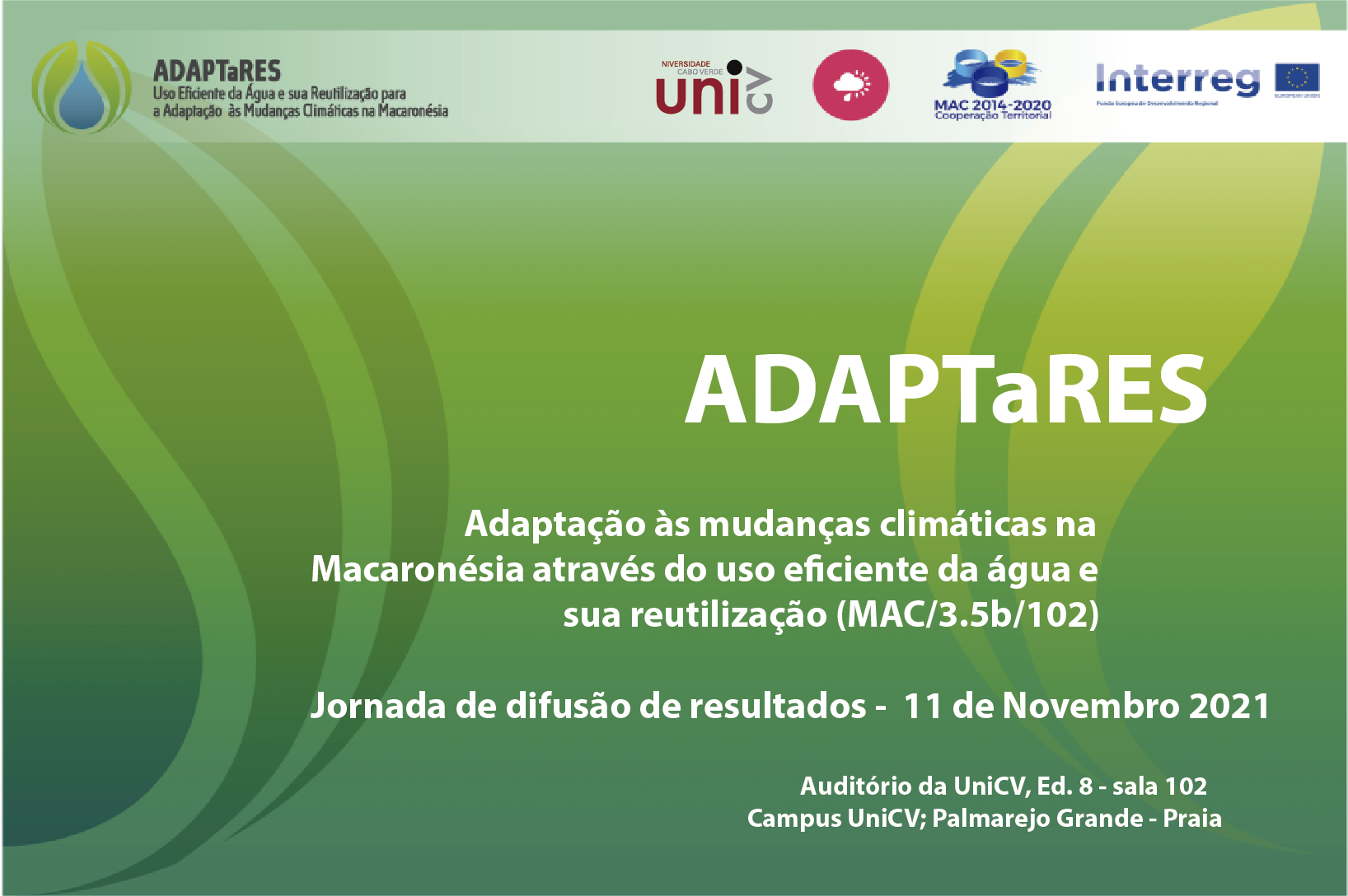 A Universidade de Cabo Verde apresenta nesta quinta-feira, no dia 11 de novembro às 8:45, as conquistas a favor da sensibilização, formação, investigação e demonstração sobre o uso dos recursos hídricos, do projeto ADAPTaRES, no auditório 202, do Edifício 8, do Campus de Palmarejo Grande.