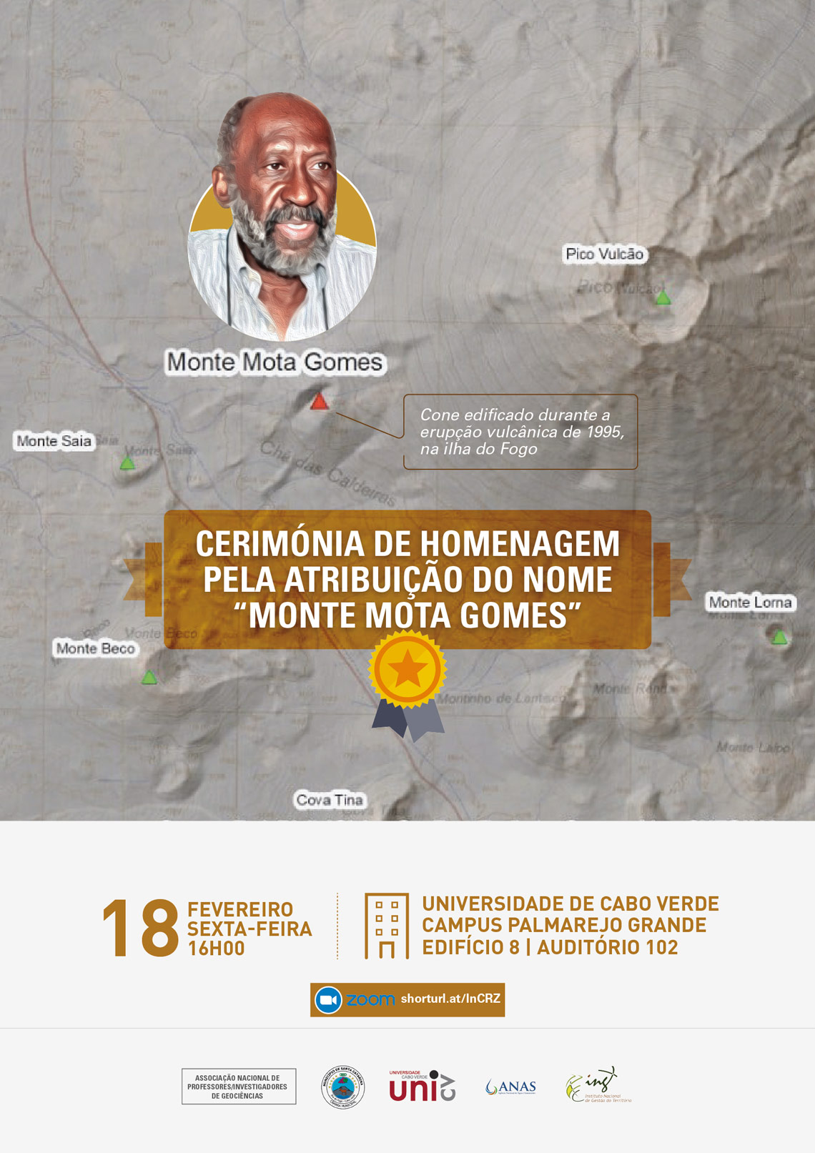 No próximo dia 18 de fevereiro de 2022, sexta-feira, pelas 16h00, o auditório n.º 102-E8, da Universidade de Cabo Verde, Campus de Palmarejo Grande vai ser palco de uma cerimónia de homenagem ao ilustre Professor Doutor Alberto da Mota Gomes, na reforma, que se destacou pelo reconhecido percurso, distintas contribuições técnico-científicas e académicas, no domínio das Geociências. O ato será promovido pela Associação Nacional de Professores/Investigadores de Geociências, em colaboração com a Câmara Municipal de Santa Catarina do Fogo, a Universidade de Cabo Verde, a Agência Nacional de Águas e Saneamento e o Instituto Nacional de Gestão do Território.