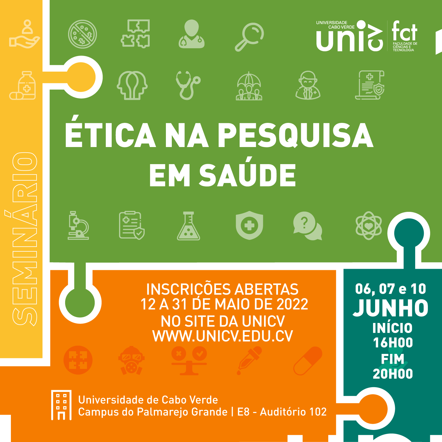 A Faculdade de Ciências e Tecnologia da Universidade de Cabo Verde e o Instituto de Higiene e Medicina Tropical da Universidade Nova de Lisboa realizam, de 6, 7 e 10 de junho, o seminário de ética na pesquisa em Saúde, na modalidade presencial, no Campus de Palmarejo Grande, e por videoconferência simultaneamente.