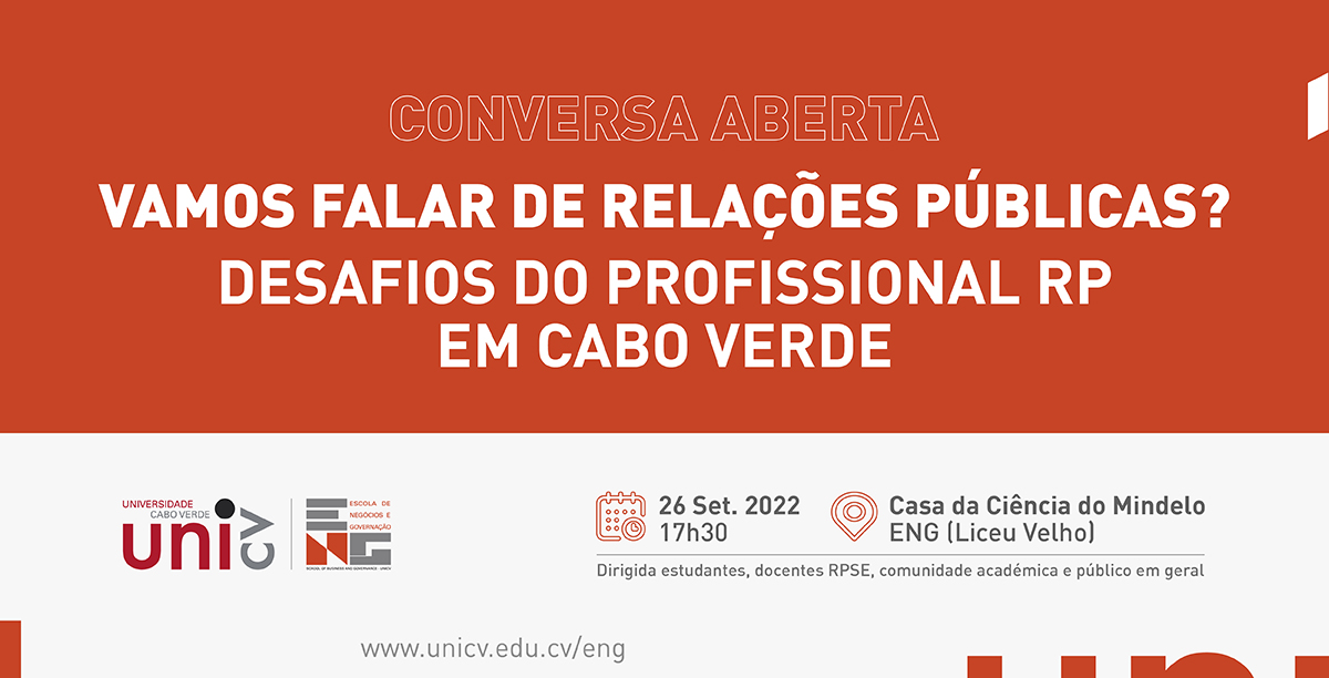 Com o objetivo de assinalar o dia Internacional do Relações Públicas, que se celebra no próximo dia 26, segunda-feira, a Universidade de Cabo Verde convida a comunidade, principalmente o Pólo II, Mindelo, a participar de uma conversa aberta sobre a atual conjuntura da atividade de Relações Públicas em Cabo Verde.