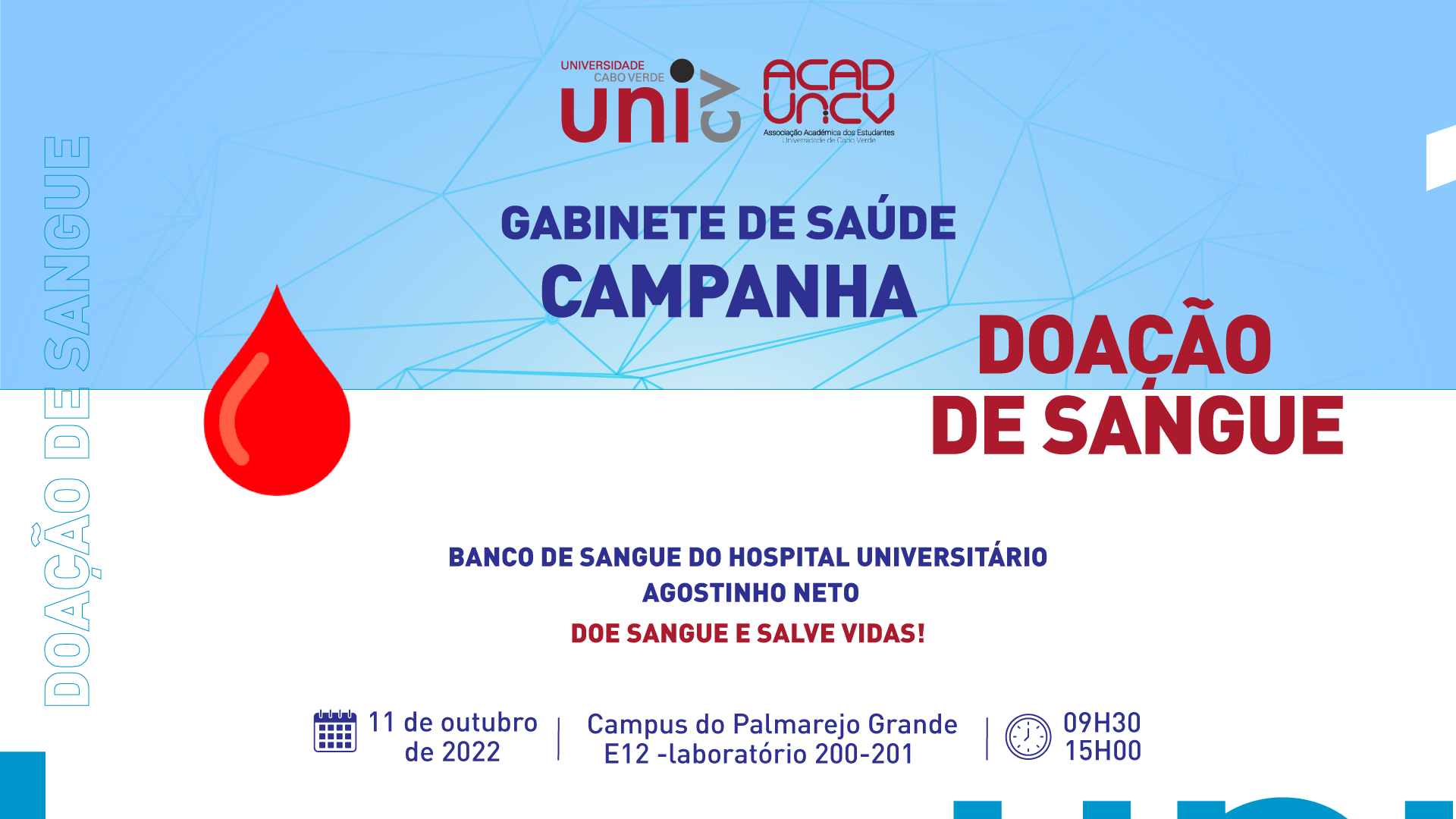 A associação dos Estudantes da Uni-CV realizam no dia 11 de outubro uma campanha de doação de sangue para ser colocado no Banco de Sangue do Hospital Agostinho Neto e ajudar futuramente quem precisar.
