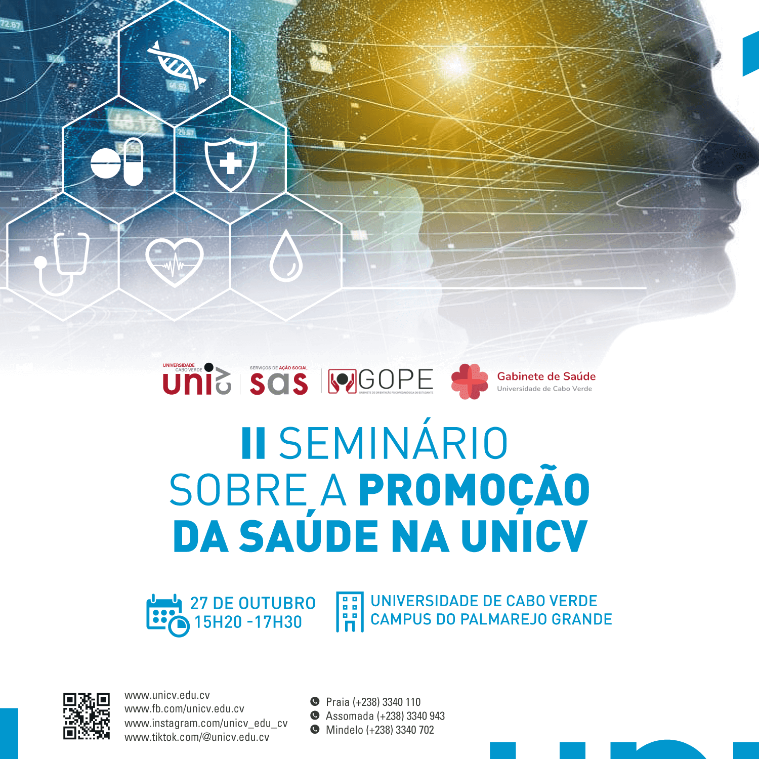 O II Seminário sobre a “Promoção da Saúde na Uni-CV” pretende apresentar os dados colhidos no primeiro seminário, partilhar experiências com a participação do X Congresso Ibero-americano de Universidades Promotoras da Saúde e refletir como implementar o modelo PEER-IESS na UniCV.