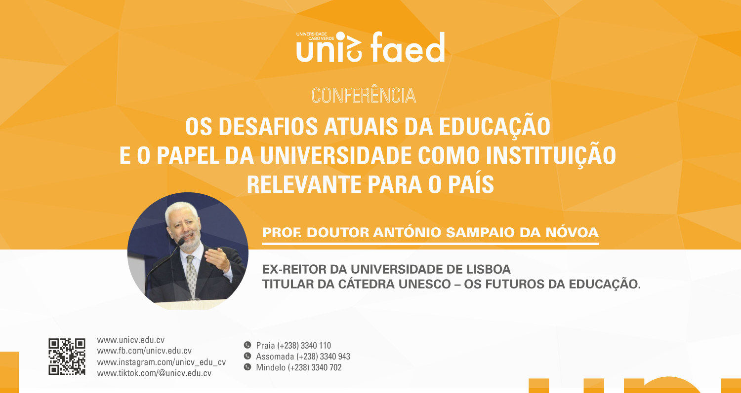 O polo II da Universidade de Cabo Verde – Mindelo – receberá no dia 17 deste mês, pelas 09h30, uma grande conferência intitulada “Os desafios atuais da educação e o papel da universidade como instituição relevante para o país”, com o conferencista Prof. Doutor António Nóvoa, ex-Reitor da Universidade de Lisboa e titular da Cátedra UNESCO – Iniciativa: OS FUTUROS DA EDUCAÇÃO.