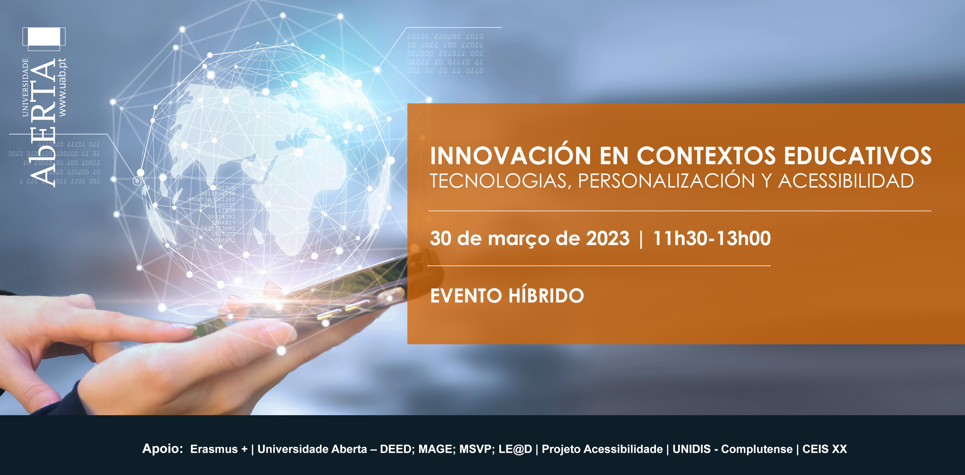 Amanhã, 30 de março, pelas 11h30, realizar-se-á uma sessão com o tema “Innovación en Contextos Educativos: tecnologias, personalización y acessibilidad”.