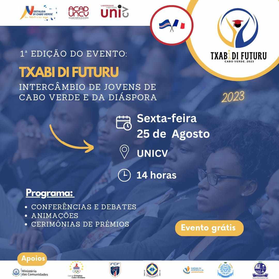 A Associação dos Estudantes da Universidade de Cabo Verde (Acad Uni-CV), em colaboração com a Associação Nostalgia di Cabo Verde, anuncia a realização do evento "Txabi di Futuru", amanhã, dia 25 de agosto, a partir das 14 horas, no Centro de Convenções da Uni-CV.