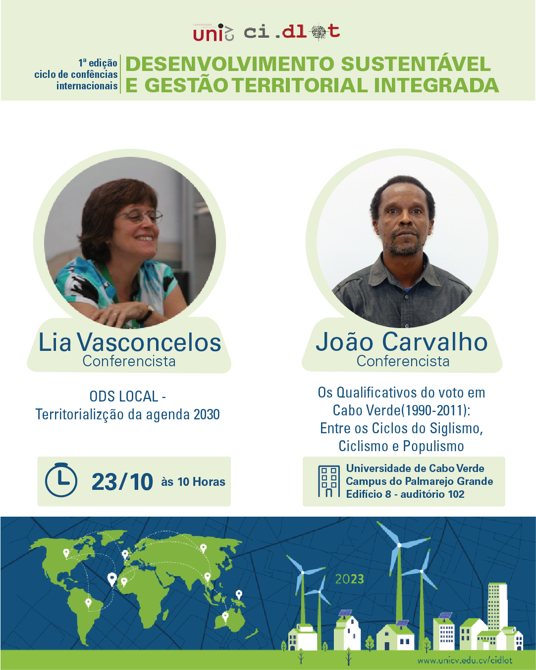 No âmbito da recém-criada Unidade Operacional de Investigação em Desenvolvimento Sustentável e Gestão Territorial (DSGT), o CIDLOT inaugura a primeira edição deste Ciclo de Conferências, que decorrerá de março a dezembro de 2023. Este ciclo promete enriquecer o diálogo académico com contribuições de investigadores tanto da Uni-CV quanto de instituições parceiras.
