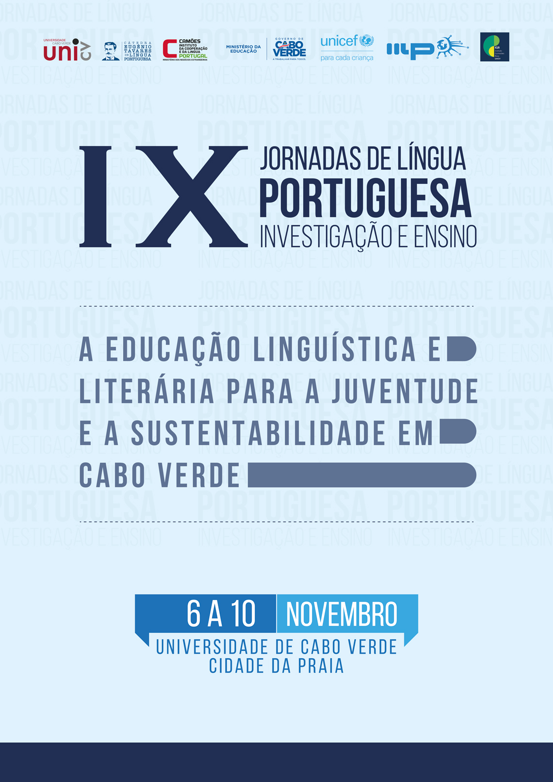 As IX Jornadas de Língua Portuguesa - Investigação e Ensino são organizadas pela Universidade de Cabo Verde - Cátedra Eugénio Tavares de Língua Portuguesa, pelo Camões - Centro de Língua Portuguesa na Cidade da Praia, pelo Ministério da Educação de Cabo Verde e pelo Instituto Internacional da Língua Portuguesa, com o apoio institucional do UNICEF e do Leitorado do Instituto Guimarães Rosa. Esta iniciativa é financiada pelo Camões - Instituto da Cooperação e da Língua, pela Universidade de Cabo Verde e pelo Ministério da Educação de Cabo Verde.