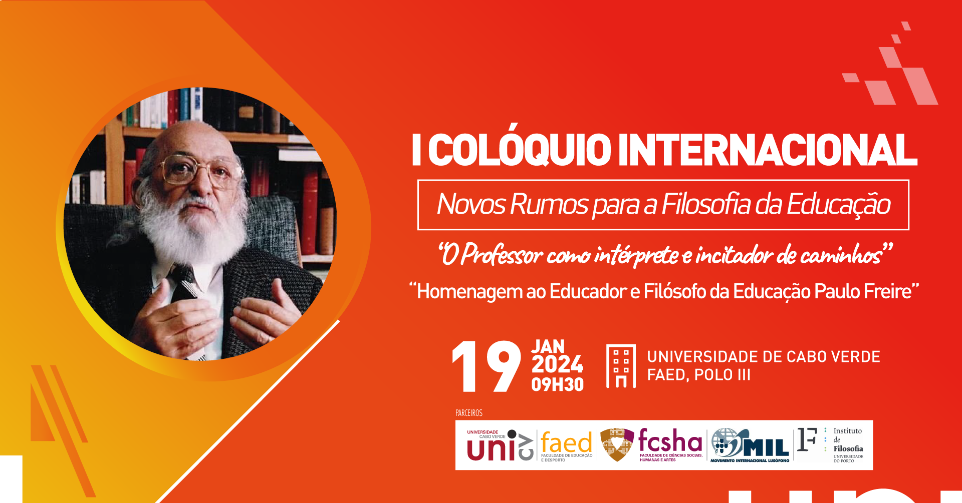 A Universidade de Cabo Verde (Uni-CV), através da Faculdade de Educação e Desporto (FAED), em colaboração com o Instituto de Filosofia da Universidade do Porto e o Movimento Internacional Lusófono, realiza o I Colóquio Internacional: Novos Rumos para a Filosofia da Educação. Este evento académico, sob o lema “O Professor como intérprete e incitador de caminhos”, presta homenagem ao ilustre educador e filósofo da educação Paulo Freire.