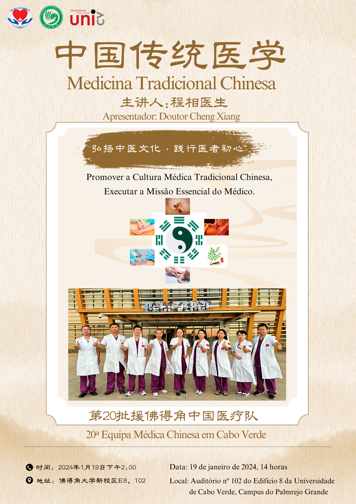 O Instituto Confúcio na Universidade de Cabo Verde, em parceria com a 20ª Equipa Médica Chinesa em Cabo Verde, organiza uma palestra dedicada à Medicina Tradicional Chinesa. O evento está agendado para 19 de janeiro, às 14h00, no Edifício 8, Auditório 102 do Campus da Uni-CV, e representa uma ponte entre culturas e conhecimentos médicos milenares.