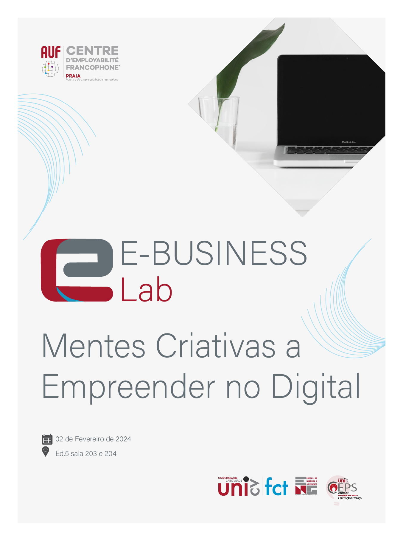 O E - BUSINESS LAB é um projeto que visa promover ideias de negócio digital e o empreendedorismo de base tecnológico na Uni-CV que surgiu no âmbito da disciplina E-Commerce e foi associado aos Centro de Empregabilidade Francófono - Praia e de Empreendedorismo e Prestação de Serviços da Universidade de Cabo Verde (CEPS).