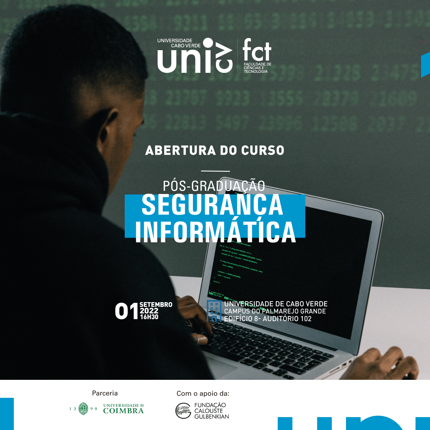 A Faculdade de Ciências e Tecnologias (FCT) da Universidade de Cabo Verde vai realizar a abertura oficial do novo curso de Pós-Graduação em Segurança Informática, no dia 01 de setembro, às 16h30, no auditório 102, do Campus do Palmarejo Grande, cidade da Praia, uma parceria com a Universidade de Coimbra, e com o apoio da Fundação Calouste Gulbenkian.