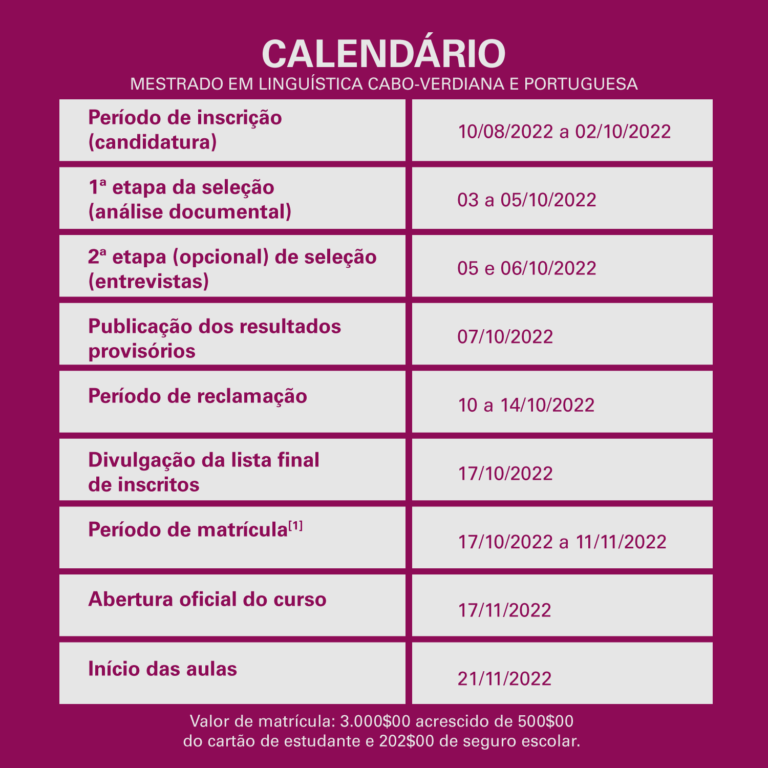 Para mais informações acerca do mestrado consulte a página as informações desta oferta formativa no site da Uni-CV.