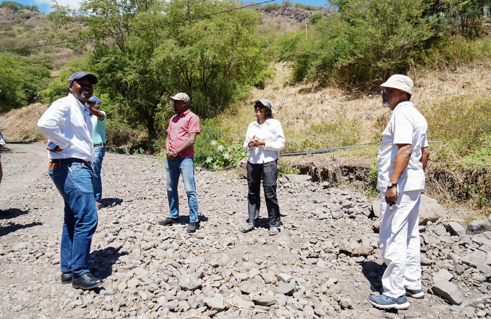 Participaram no encontro os investigadores do projeto, Professor António Lobo de Pina, coordenador da equipa da Uni-CV, e a Professora Sónia Silva Victória, acompanhados pelo consultor Engenheiro José Mejias. Após a reunião, a delegação deslocou-se a Ribeireta, área de implementação do projeto, para avaliação in loco dos trabalhos de topografia já realizados e identificação das intervenções por concluir.