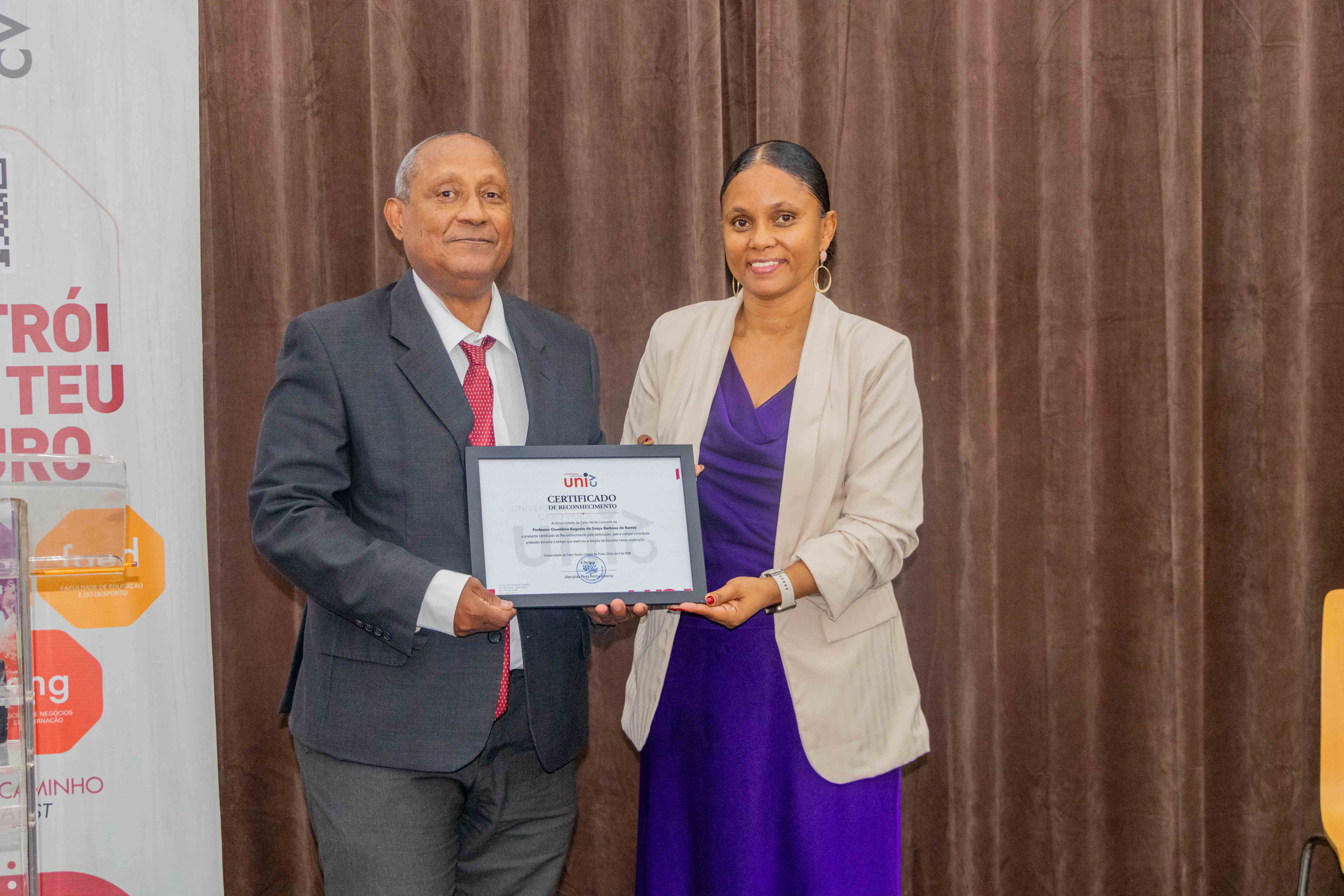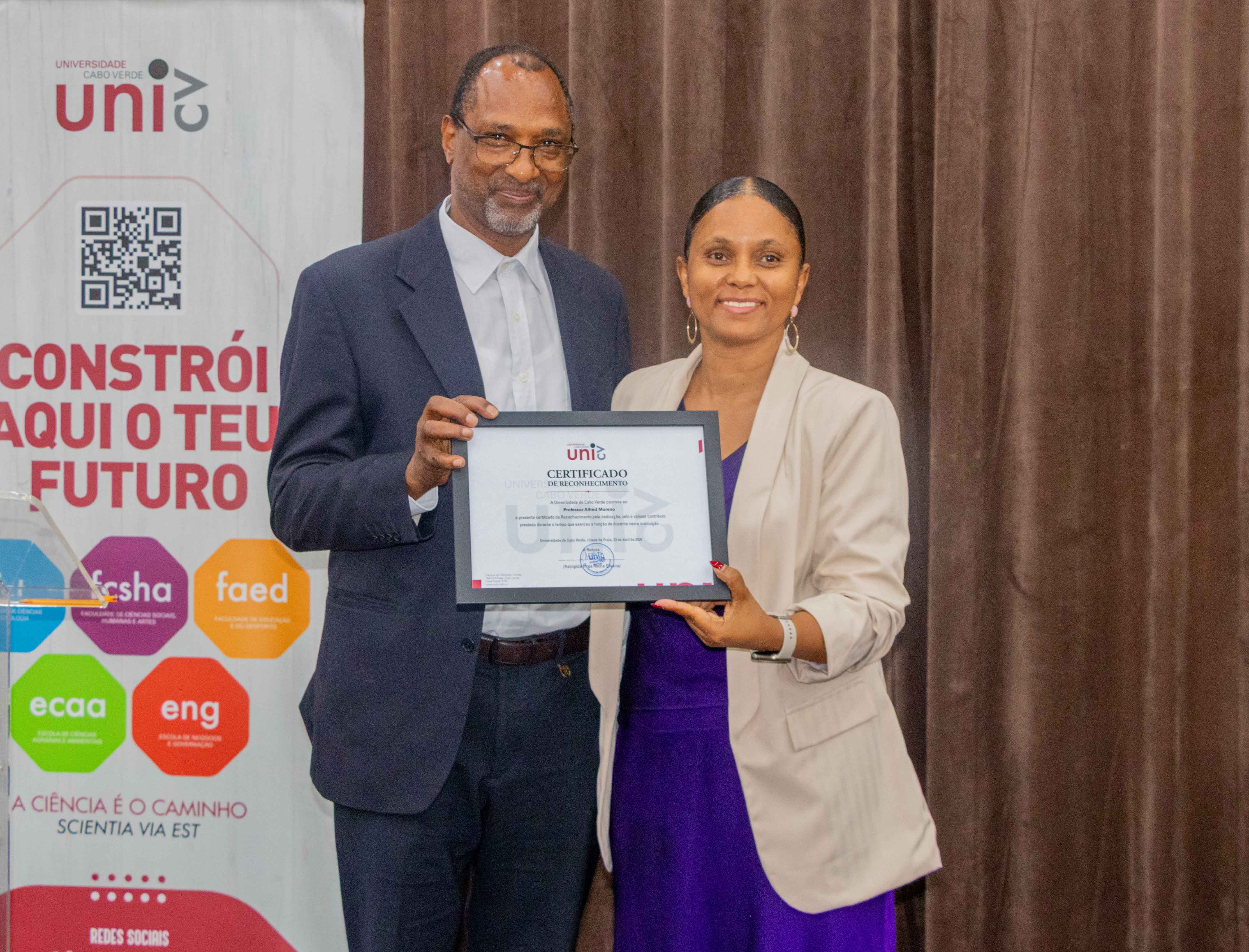 No centro do evento estiveram três docentes que encerram agora o seu percurso na instituição: Alfredo Moreno, António Rocha Fernandes e Osvaldino Barros. "A vossa trajetória inscreve-se na própria construção da Universidade de Cabo Verde", afirmou a Reitora, dirigindo-se aos homenageados. "O vosso legado permanecerá entre nós."