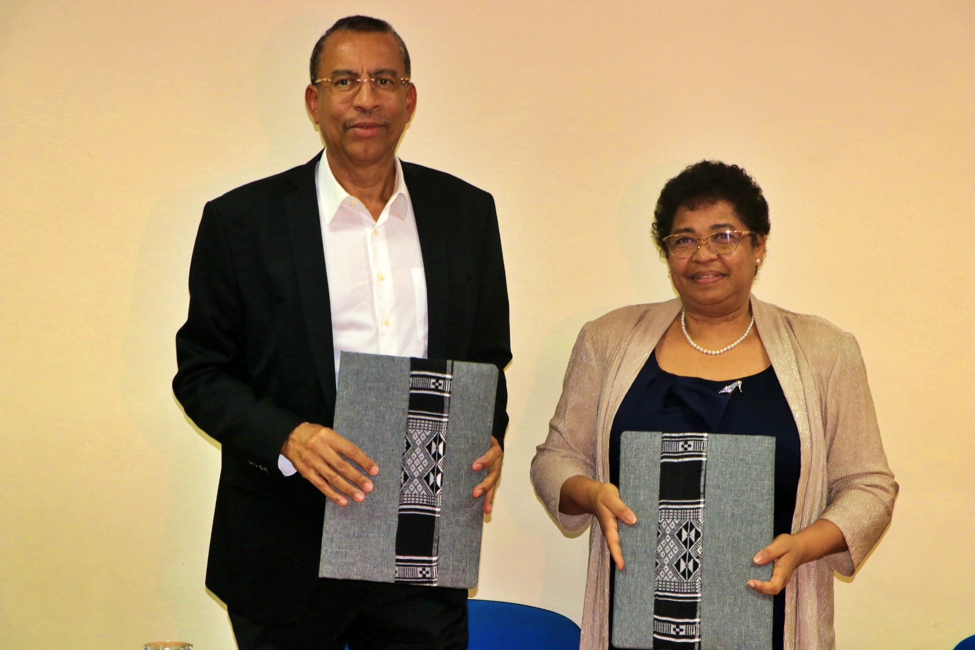 A Reitora da Universidade de Cabo Verde, Judite Medina do Nascimento, e o Presidente do Conselho de Administração Grupo Cabo Verde Telecom, José Luís do Livramento, assinaram um protocolo de cooperação no dia 16 de janeiro, na sala de reuniões da Reitoria.