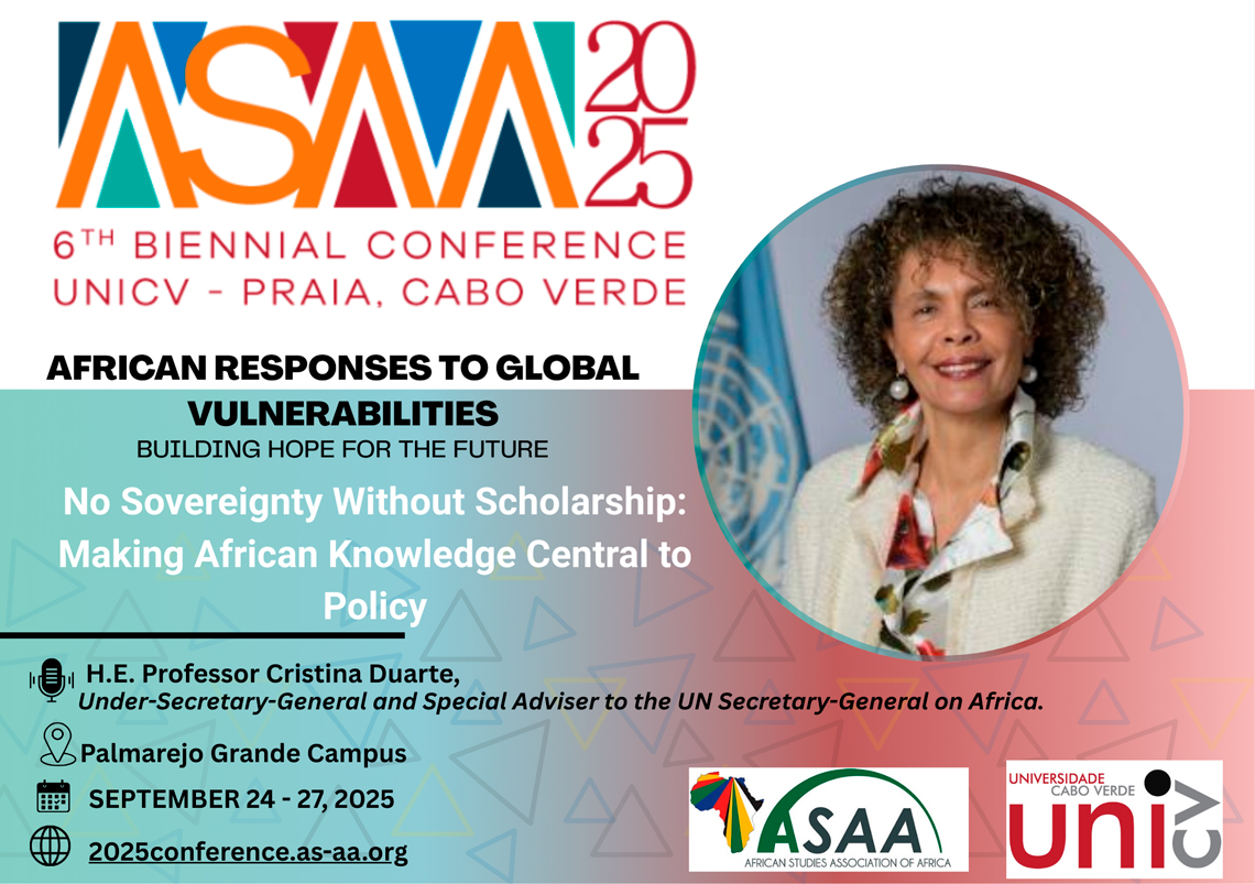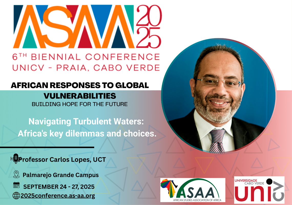 Aqui encontra a programação completa da 6.ª Conferência Bienal da ASAA (24–27 de setembro de 2025), acolhida pela Uni-CV, sob o tema “Respostas Africanas às Vulnerabilidades Globais: Construindo Esperança para o Futuro”. Ao longo de quatro dias, o evento reúne plenárias, keynotes, painéis temáticos, sessões de comunicações, oficinas e atividades culturais no Campus do Palmarejo Grande. A participação é multidisciplinar e multilingue (PT/EN/FR), envolvendo académicos, decisores, artistas e sociedade civil de África e da diáspora. Consulte abaixo a agenda diária, locais e horários; utilize os filtros para explorar por tema, formato, idioma e oradores.